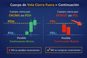 📌 Si el cuerpo de la vela diaria NO se mantiene fuera del PDH/PDL, significa: